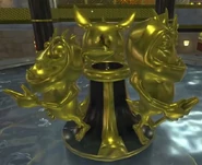 Capital Cashino, the fourth world in Yooka-Laylee, is set in a massive casino with a mild Ancient-Egypt theme adorning the area. The player can find various casino games such as roulette tables, slot machines, Pachinko machines, and card tables to name a few. There are large amounts of gold scattered around the world, possibly being Capital B's revenue from his casino.