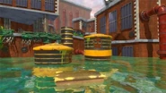 Underwater Challenge: To the right of the entrance, there is a Lily pad. Under the lily pad there is a button for a Hoops time trial under water.